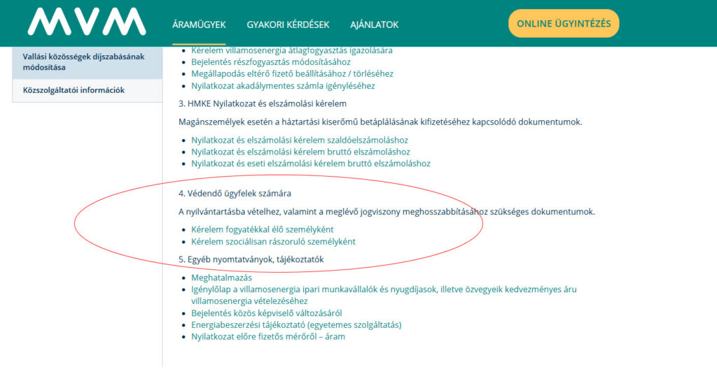A szolgáltatói gyakorlat egységes. Az MVM Next tájékoztatója is kimondja, hogy védendő ogyasztó az lehet, aki szociálisan rászoruló vagy fogyatékkal élő, és ezt kérelmezi a megfelelő igazolásokkal. A villany- és gáz-nyomtatványok elérhetők a szolgáltatók dokumentumtárában.