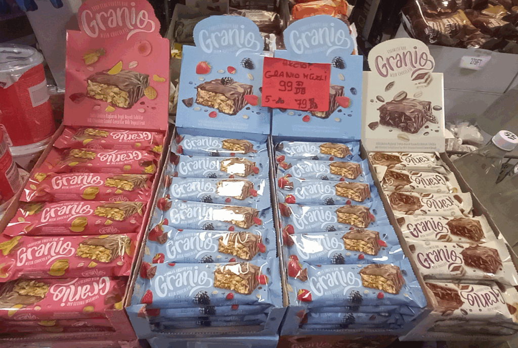Akciós édességek, üdítők egymás mellett a Top Diszkont egyik pultján.