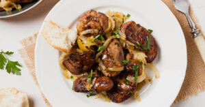 A legfinomabb sült hagymás csirkemáj receptje: sűrű szafttal, hogy lehessen tunkolni