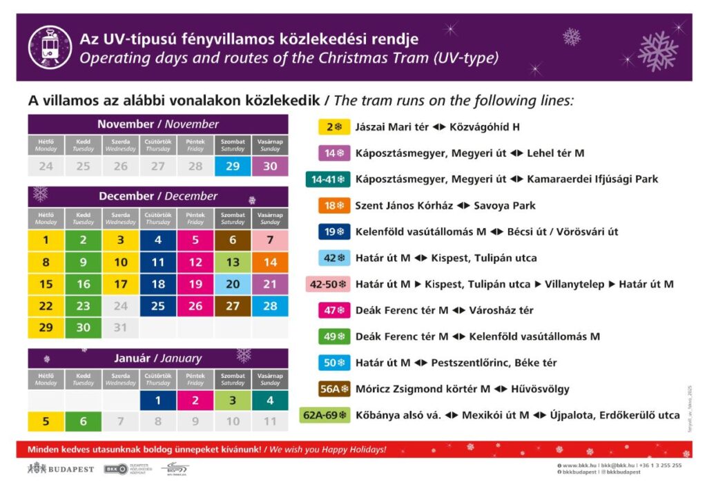 Kevés hangulatosabb (és olcsóbb) program van Budapesten, mint felszállni valamelyik fénybe öltözött járműre. A BKK ünnepi járatai idén sem hagynak élmények nélkül: nemcsak a belvárosban, hanem a külső kerületekben is találkozhatunk velünk, vagyis akár munkába menet vagy éppen hazafelé is utazhatunk az egyik ragyogó járművel.