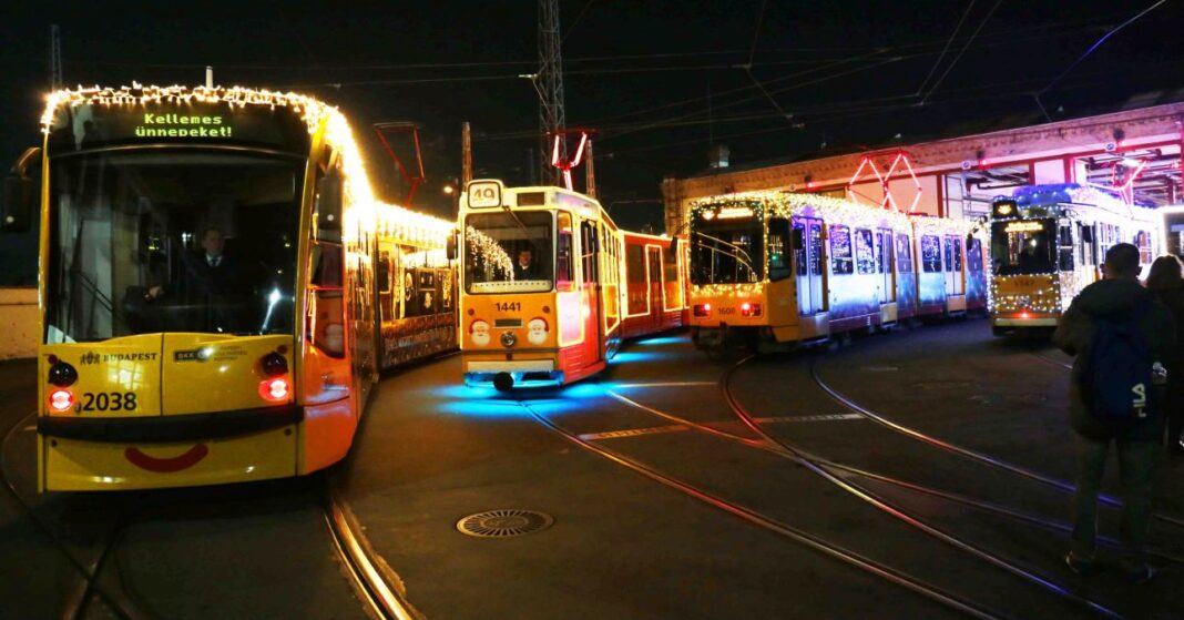 Feldíszítették a modern Combinókat, a régi Tátrákat és a KCSV-ket is, így a körúton vagy épp Kőbányán is összefuthatunk velük. Sőt, a Fényfogaskerekű révén a budai hegyekbe is jut a LED-ek fényéből. (A Fényfogas november 28. és 2026. január 6. között közlekedik, mindennap délután 4 órától estig.)