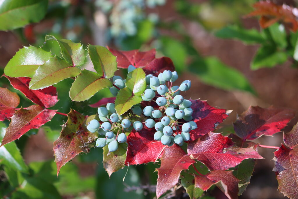 A mahónia másik titka abban rejlik, hogy virágzás után, a sárga virágok helyén kékes-lilás, hamvas bogyók fejlődnek, amelyek ősszel és télen is a bokron maradhatnak. Ezek a bogyók nemcsak szépek, hanem a madarak kedvelt tápláléka is, így extra haszonnal működik a növény.