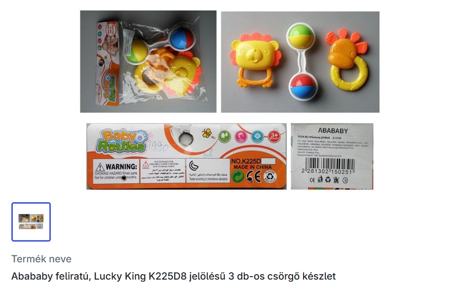 Egy példa a fogyasztóvédelem veszélyes termékek listájáról. „A termék előrelátható használata során fennáll a fulladásveszély súlyos kockázata.” Itt az adatlap.