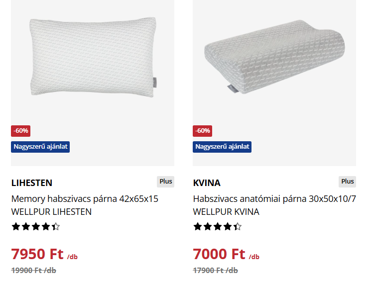 Most a memóriahabos párnák is nagyon jó áron vannak. Ezek ugyan drágábbak, mint sima társaik, viszont az egyébként közel 20.000 forintos párnák most 7-8.000 forintért vihetők.