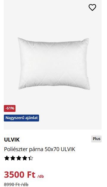 Ez a kispárna 9000 forint helyett most 3.500 forint, 50×70-es méretben kapható.