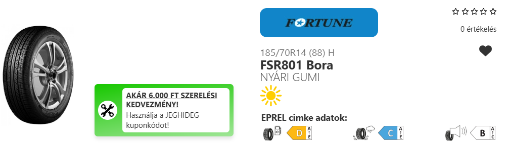 1. 185/70R14 méretű Fortune nyári gumiabroncs – 12.090 forint