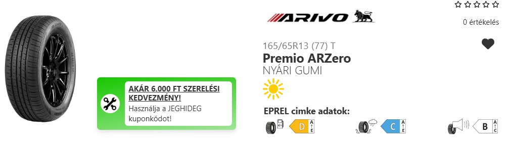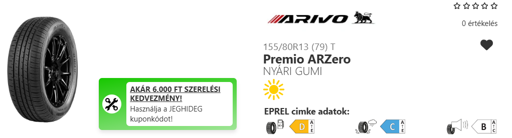 1. Arivo kisebb méretben: 155/80R13 – 13.190 forint