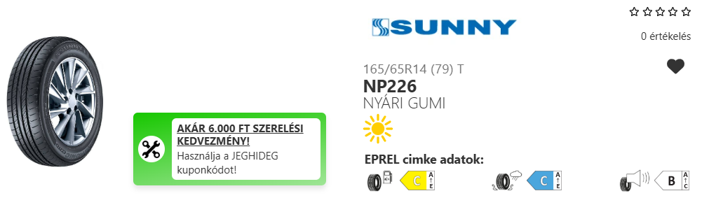 1. 165/65R14 méretű Sunny nyári gumi – 13.590 forint