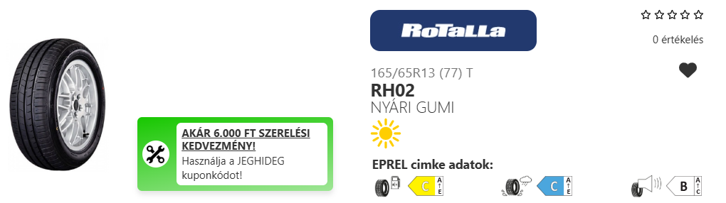 1. 165/65R13 méretben Rotalla nyári gumi – 13.890 forint