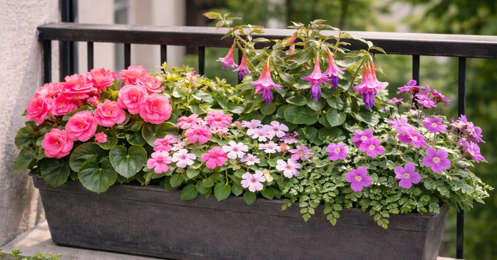 Árnyékban eleve kevesebb az a virágos évelő, amelyik tényleg ugyanazzal a lendülettel hozza a virágokat, mint a napos balkon kedvencei. De azért itt sem reménytelen a helyzet. A legbiztosabb választások inkább a kisebb, lassabban fejlődő, edényben is vállalható fajták. Ilyen lehet például a hunyor. Ha pedig valaki kifejezetten sok virágot szeretne árnyékban, a begóniát, törpe nebáncsvirágot, fuksziát és hortenziát ajánljuk: ezek viszont nem mind klasszikus, télálló évelő balkonládás növények nálunk, ezért a kettőt nem szabad összekeverni.