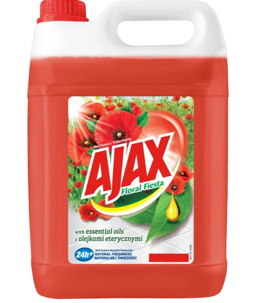 Az Ajax Floral Fiesta Red Flowers padlótisztító 99%-ban természetes összetevőkből álló, vegán tisztítószer, viszont nagyon hatásos is. Legyen szó márványról, kerámiáról vagy konyhai pultról, bárhova lehet használni a felmosás mellett. Az esszenciális olajoknak köszönhetően nemcsak tisztaságot, hanem 24 órán át tartó, természetes pipacsillatot is hagy maga után, de mégsem fojtogató.